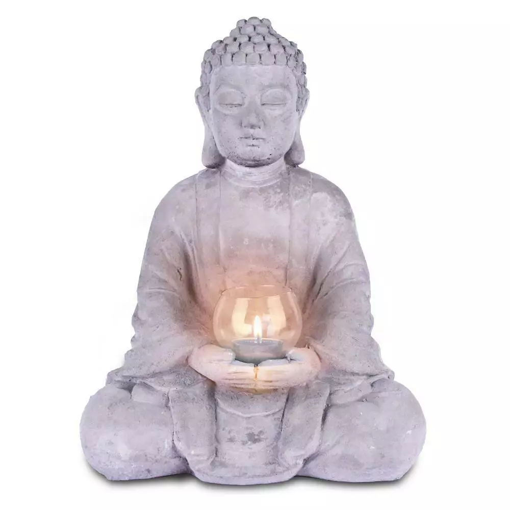 Create your own oasis with the Buddha’s calming presence and design your own tranquil retreat where you will make wonderful memories. This indoor/outdoor Buddha Tealight Candle Holder Decoration is a peaceful, meditative addition to any home’s interior or garden decor. Handmade of lightweight cement composite through an ecofriendly manufacturing process, this composite material is an innovative blend of cement and fiberglass. With the help of using innovative material, KANTE provides clients with high strength, durable and stain resistant items. This material has strong UV resistant ability and stay well in wind, rain, hot and cold season. Illuminate your imagination, home or garden with KANTE’s Zen Buddha Candle Holders Collection.