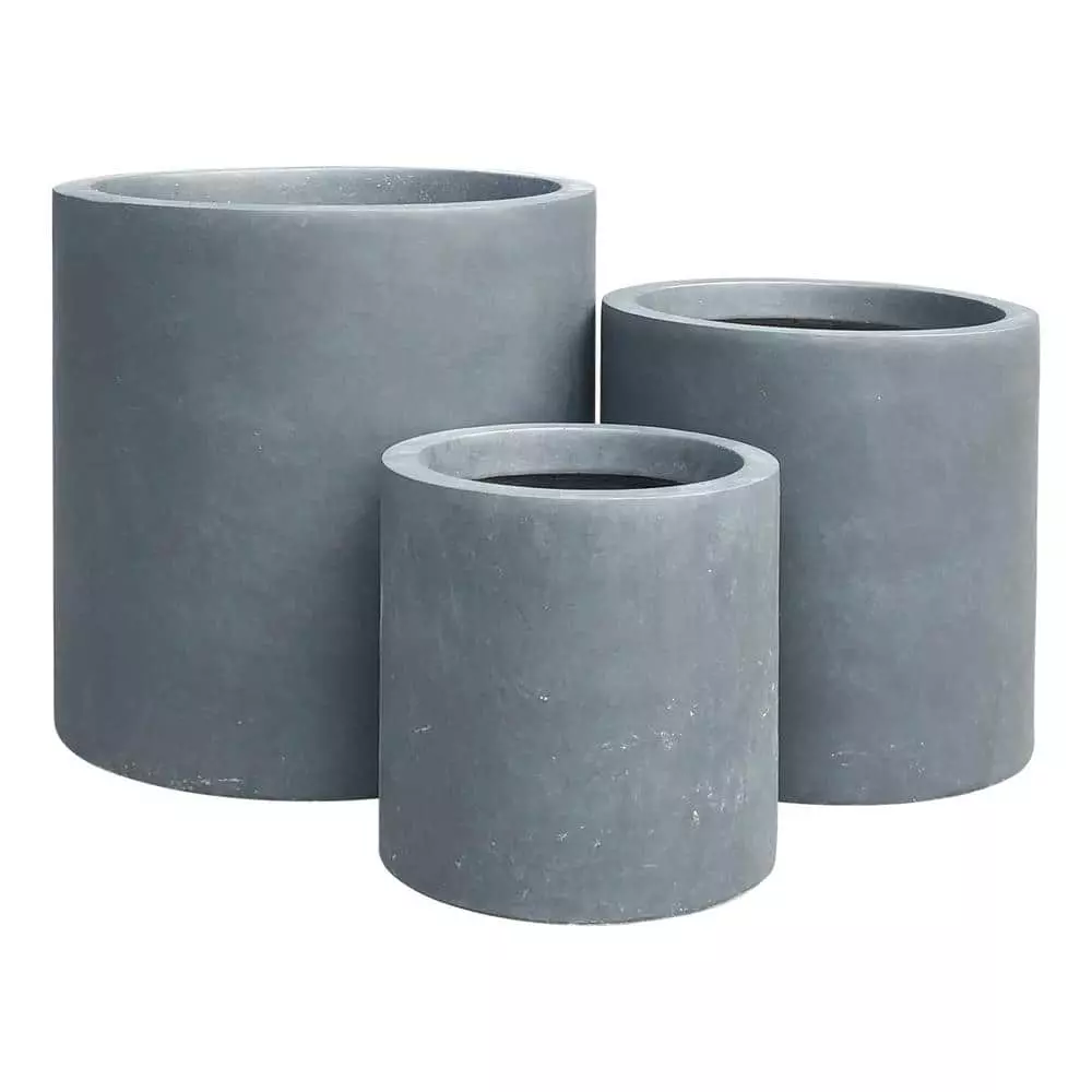 KANTE 15.8 in., 12.6 in. and 9.8 in. Tall Charcoal Lightweight Concrete Outdoor Modern Cylindrical Planters (Set of 3)
