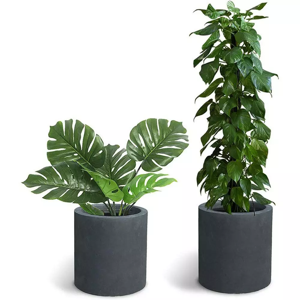 KANTE 15.8 in. x 12.9 in. and 9.8 in. W Round Charcoal Concrete/Fiberglass Indoor Outdoor Elegant Planters