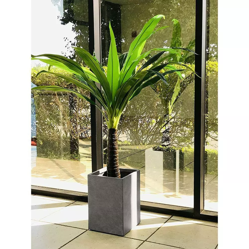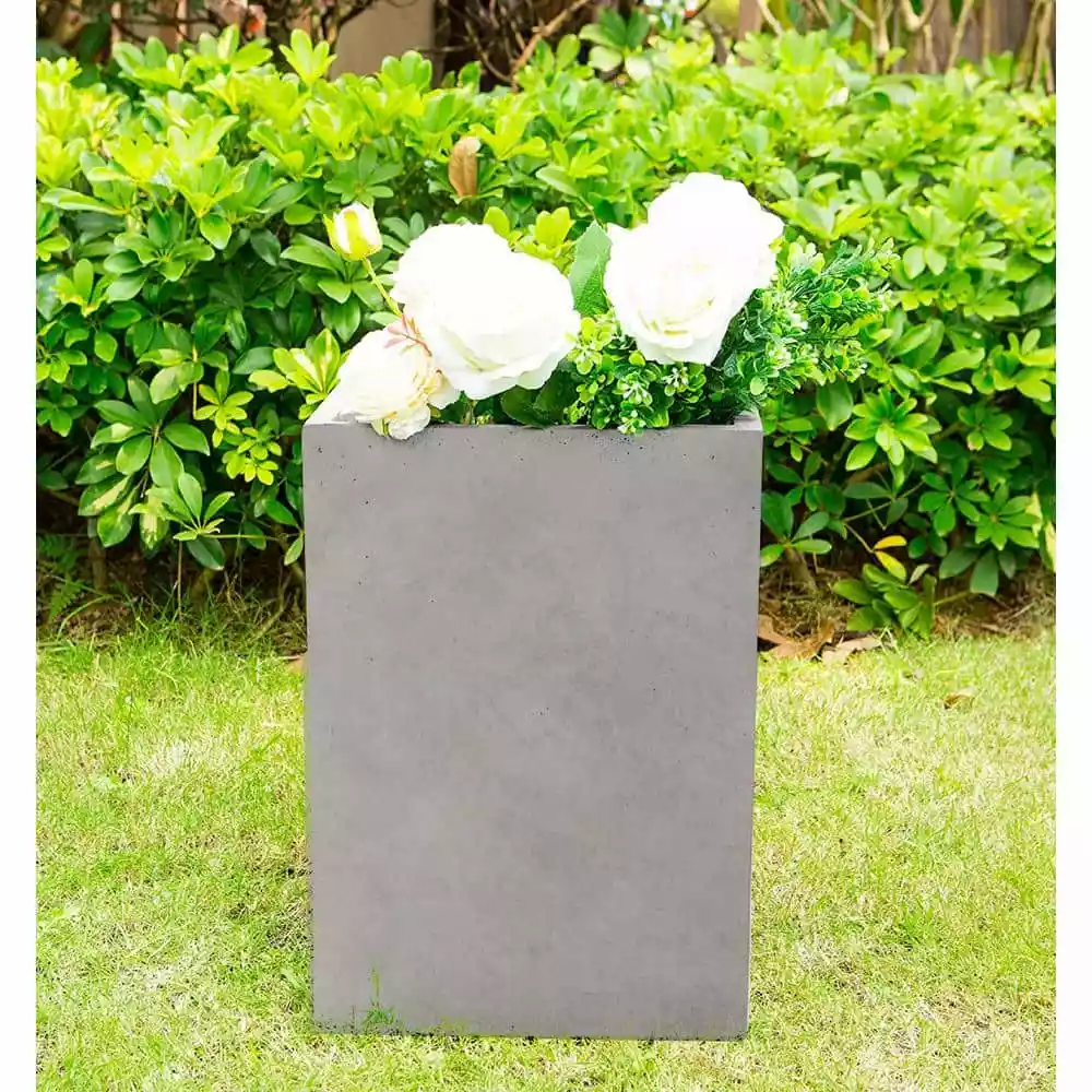 These elegant square planters have authentic concrete finish with visible pores make them beautiful contemporary pieces. The look and feel is true concrete but it weights substantially less than it looks. It also has very smooth finish instead of rough concrete potters you might be used to. The size is very generous and can hold a good amount of plants without looking crowded. It does have a more modern feel to it being straight lines and concrete. Would look great on apartment balcony or large backyard patio. Create a modern space using these tall wide planters. The straight lines and solid grey finish are a hot trend in modern landscape designs. Ideal for succulents and delicate plants that need room to grow. Made of Lightweight concrete through an ecofriendly manufacturing process. This composite material has no ruber, plastic, and steel. This material has all the advantages of concrete such as strength, durability, weather and damage resistance. Materials involve cement and weather resistant.