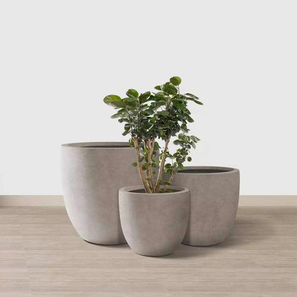 - Modern round concrete planters: these set of round planters with soft curves and an authentic concrete finish will add an elegant touch to your decor and is perfect for your endless succulent designs