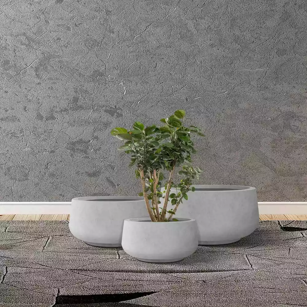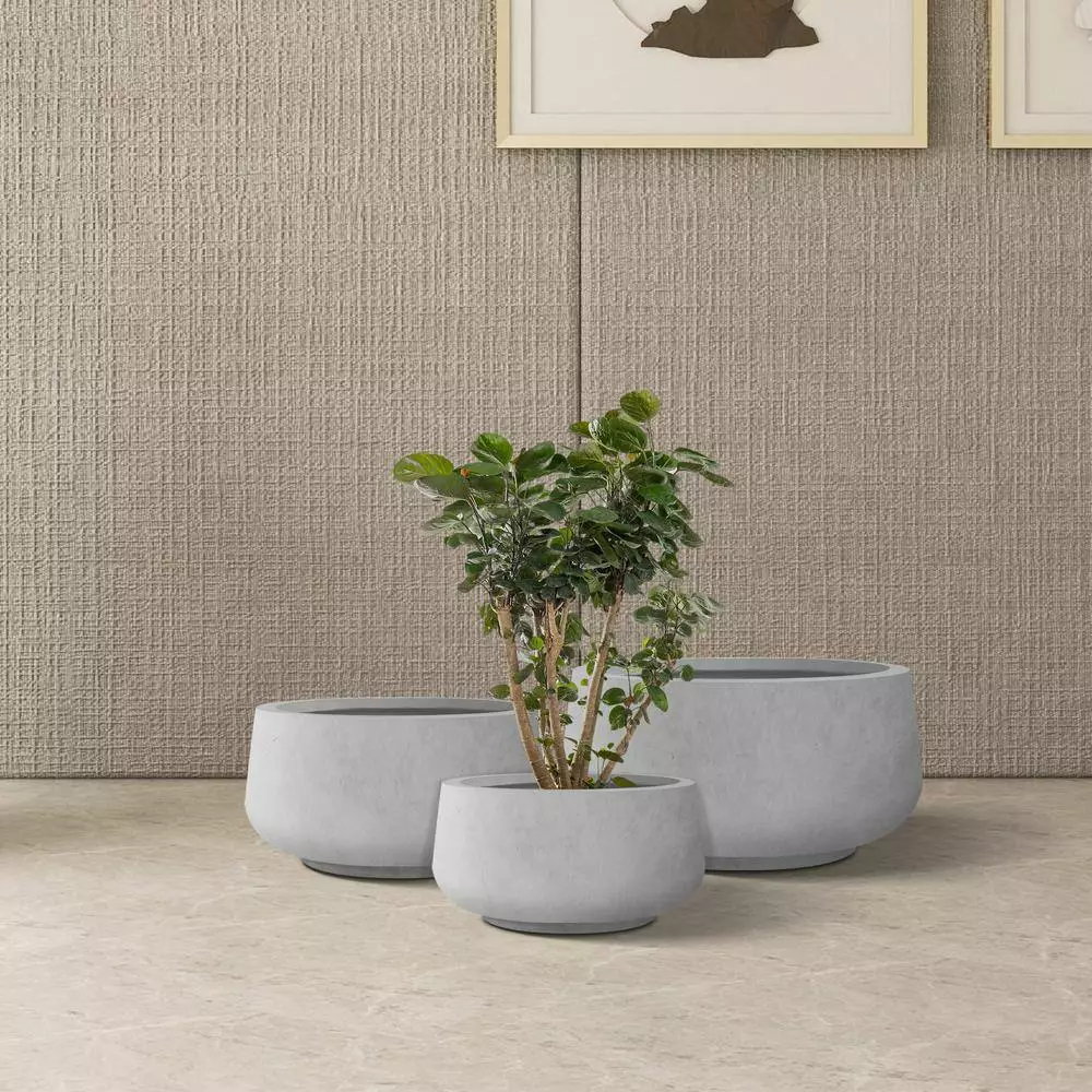 KANTE 21.6″, 16.9″, and 12.5″W Round Natural Concrete Elegant Planters, Set of 3 Outdoor Indoor Seamless w/ Drainage Hole