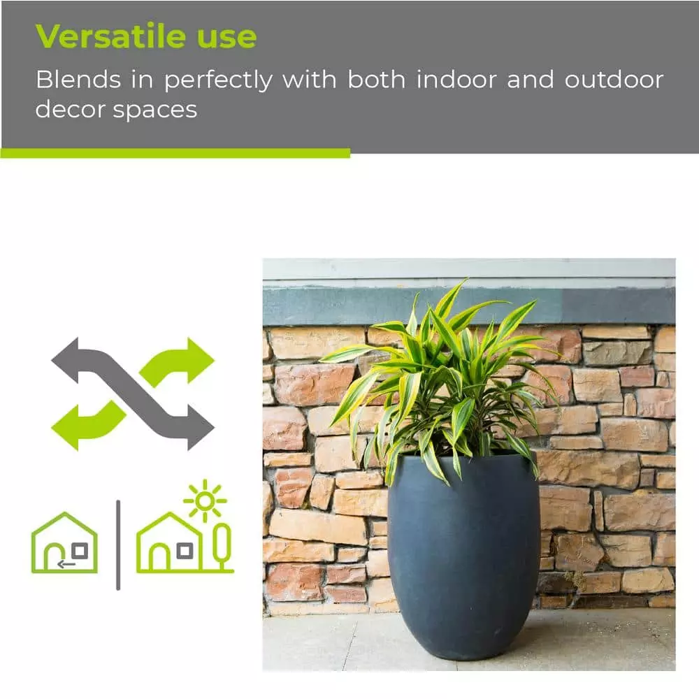 KANTE 21.7 in. Tall Charcoal Lightweight Concrete Round Outdoor Planter