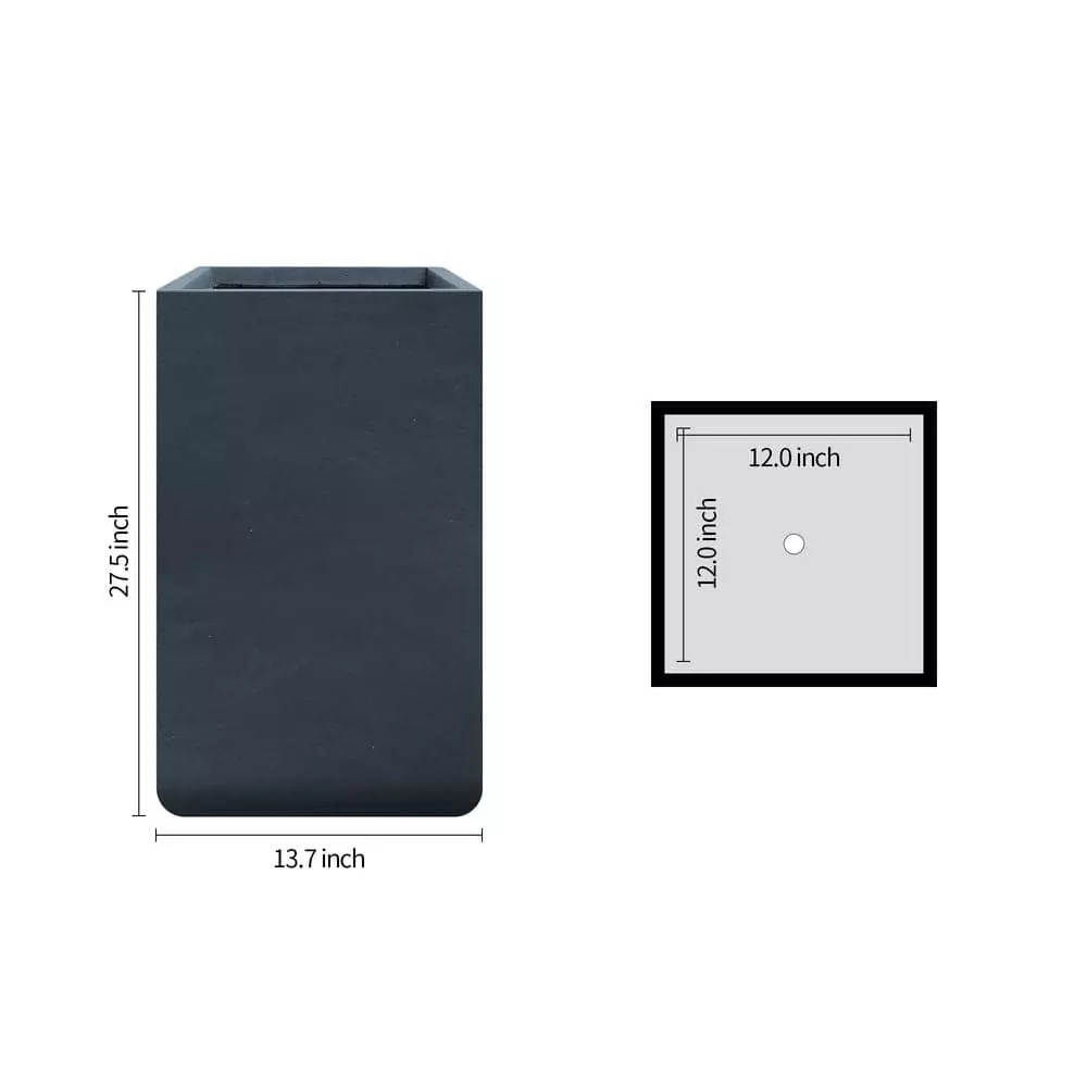 KANTE 27.6 in. H Square Charcoal Concrete and Fiberglass Tall Planter Outdoor Indoor Lightweight Plant Pots