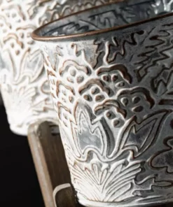 SULLIVANS 9.5 in., 8.5 in. and 7.5 in. Gray Metal Flourish Planter with Handles – (Set of 3)