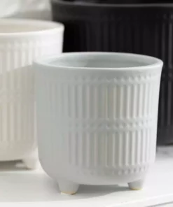 SULLIVANS 9.5 in., 8.5 in. and 7.5 in. Gray Metal Flourish Planter with Handles – (Set of 3)