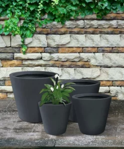 KANTE 20 in. H Square Charcoal Lightweight Concrete/Fiberglass Indoor Outdoor Elegant Tall Planter