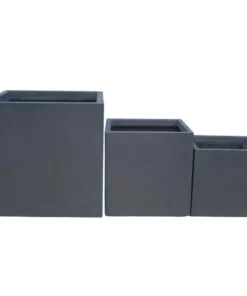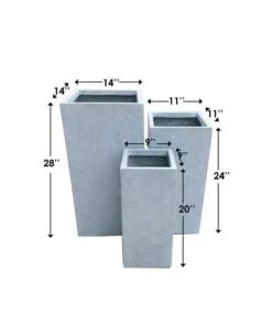 KANTE 24 in. H Square Charcoal Concrete/Fiberglass Indoor Outdoor Elegant Tall Planter