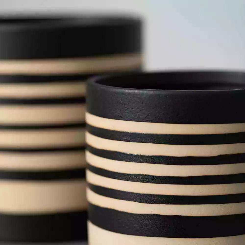 Ideal for the urban jungle, this set of 2 ceramic containers really stand out from the crowd. With a sharp black base finish, this duo features a unique painting technique that resembles the look of hand-wrapped rattan trim. Over the last 52-years, Sullivans has become an industry leader in home decorations. Our brand is rooted in tradition while incorporating modernized trends to keep your home looking up to date with timeless style. Here at Sullivans, we pride ourselves on creating product designs focused on quality and value, ensuring that our customers have access to beautiful products at reasonable price points.