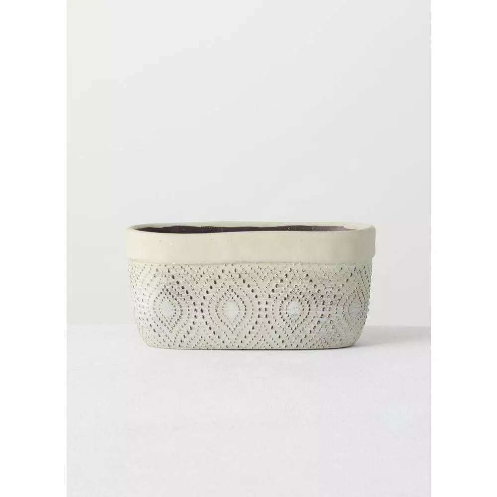 SULLIVANS Green Geometric Print Cement Double Pot