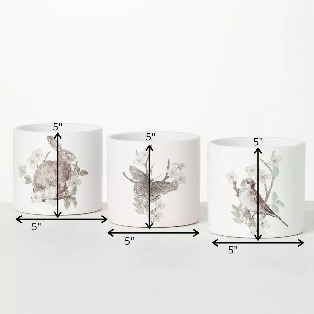 Add some life to your home with these beautiful spring-patterned pots. With hand painted watercolors, these pots are designed with delicate florals with lush green leaves and realistic garden-dwelling animals that almost seem to come to life. Perfect for any garden scape or in home florals. Over the last 52-years, Sullivans has become an industry leader in home decorations. Our brand is rooted in tradition while incorporating modernized trends to keep your home looking up to date with timeless style. Here at Sullivans, we pride ourselves on creating product designs focused on quality and value, ensuring that our customers have access to beautiful products at reasonable price points.