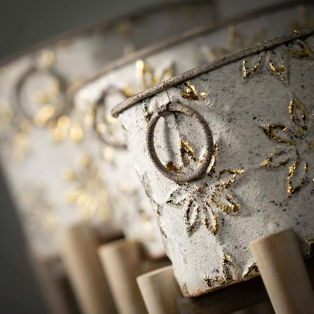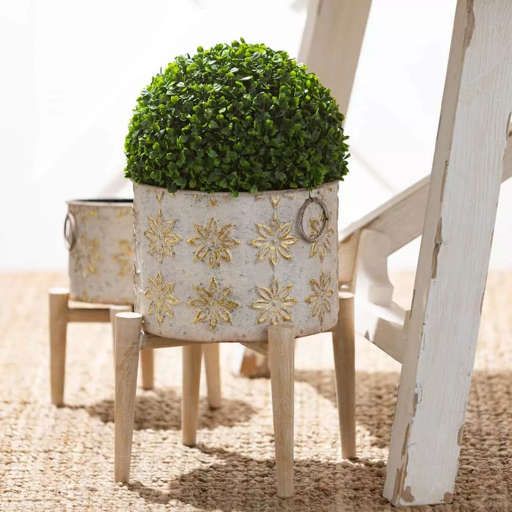 SULLIVANS White and Gold Flower Burst Metal Planter on Stand (Set of 3)