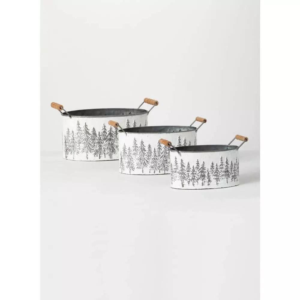 Three’s never a crowd with this trio of functional planters with wooden handles. Made of metal with a wintery evergreen tree embossed scenery, these pieces are whitewashed for a casual and eclectic styling. Over the last 52 years, Sullivans has become an industry leader in home decorations. Our brand is rooted in tradition while incorporating modernized trends to keep your home looking up to date with timeless style. Here at Sullivans, we pride ourselves on creating product designs focused on quality and value, ensuring that our customers have access to beautiful products at reasonable price points.
