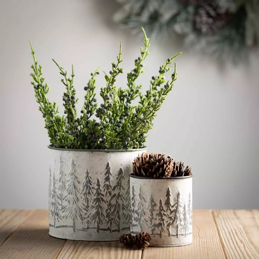 Three’s never a crowd with this trio of functional planters. Made of metal with a wintery evergreen tree embossed scenery, these pieces are whitewashed for a casual and eclectic styling. Over the last 52 years, Sullivans has become an industry leader in home decorations. Our brand is rooted in tradition while incorporating modernized trends to keep your home looking up to date with timeless style. Here at Sullivans, we pride ourselves on creating product designs focused on quality and value, ensuring that our customers have access to beautiful products at reasonable price points.