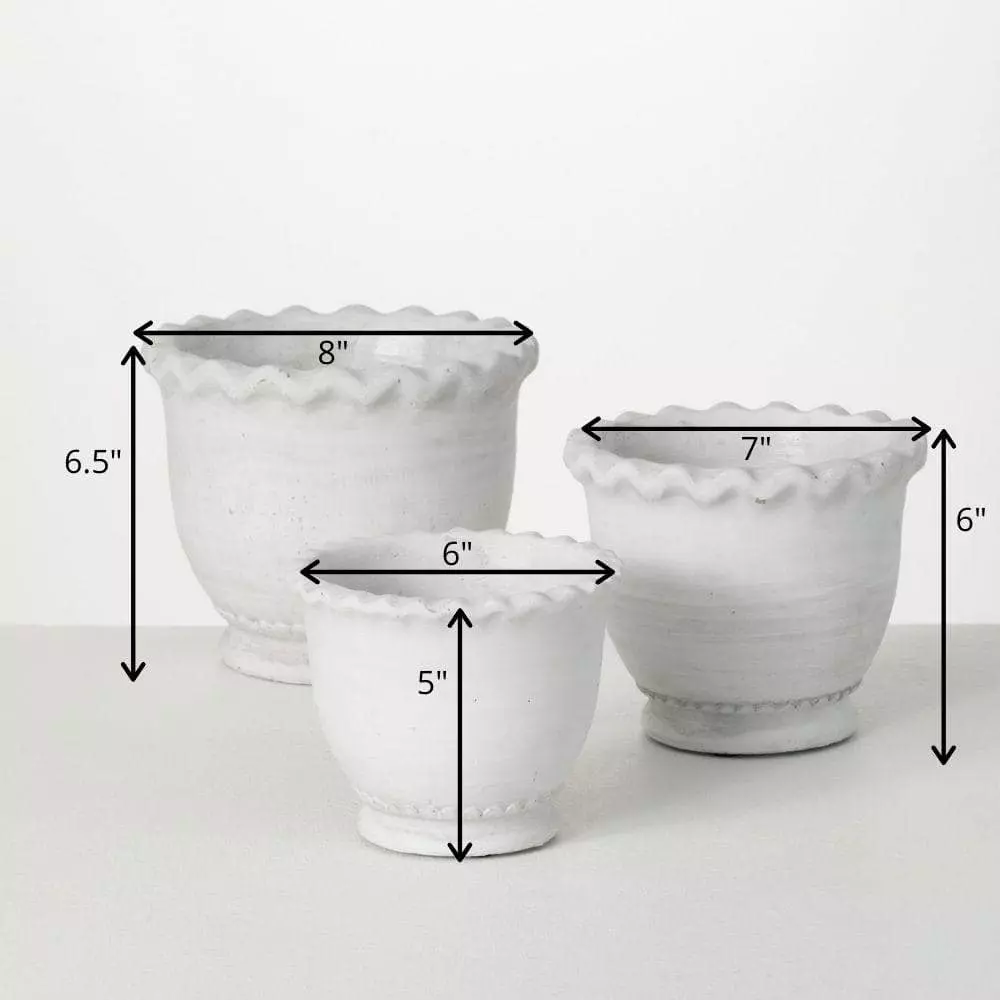 Add a regal sense of style to your space with this charming set of scalloped-edged pots. This trio will look classic in any setting. Over the last 52-years, Sullivans has become an industry leader in home decorations. Our brand is rooted in tradition while incorporating modernized trends to keep your home looking up to date with timeless style. Here at Sullivans, we pride ourselves on creating product designs focused on quality and value, ensuring that our customers have access to beautiful products at reasonable price points.