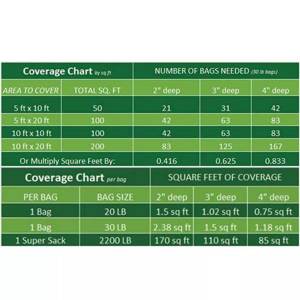 - Pebbles size range on the shortest side: 1 in. to 3 in.