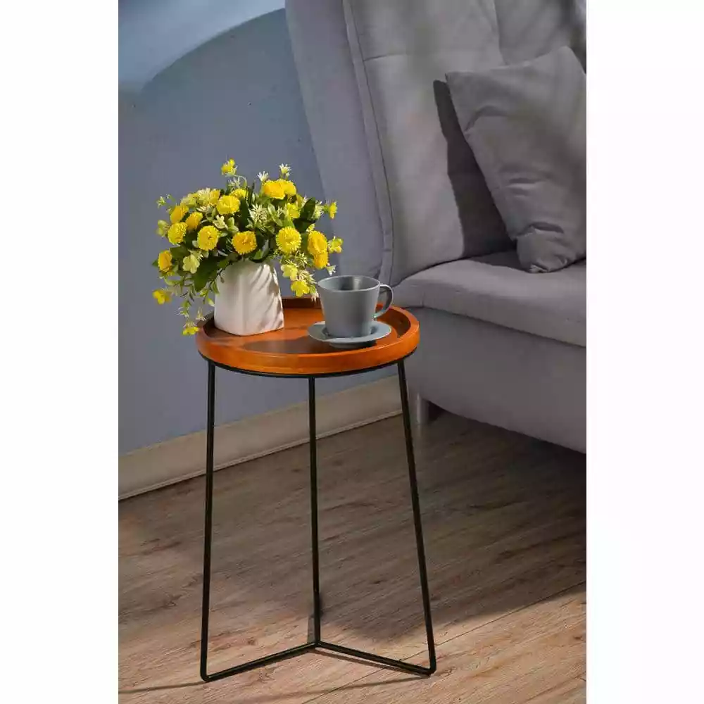 Wooden top and metal frame enhance durability
