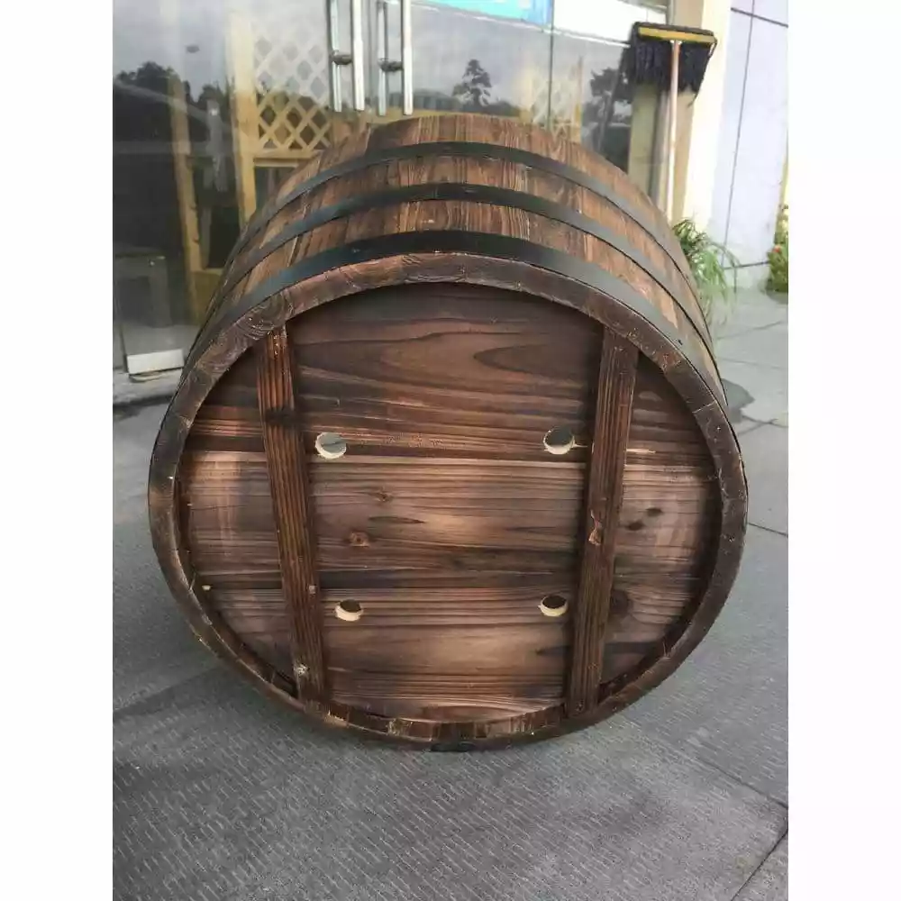 Functional and stylish are two of the many great qualities in this 26 in. Round Wooden Barrel Planter. It is made of 100% dried fir wood that was burned for an attractive and lasting appearance. Curve and wooden dowels Construction,so it will stand strong for as long as you need it. Its large size is perfect for outdoor use.