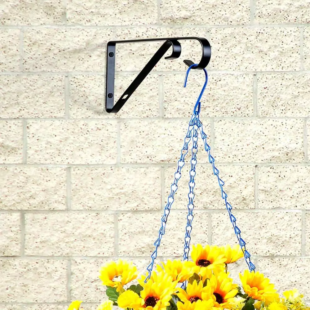 Hang your plants, flower pots and other garden / yard decor with the help of this Black Iron Plant Bracket. The bracket is made of solid iron and has a black coated finish. It includes all the necessary hardware for an easy installation and holds up to 40 pounds.